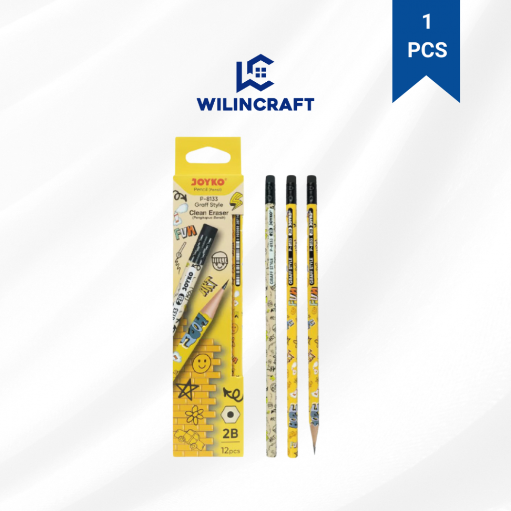 Wilincraft Pensil Joyko Motif merupakan pensil berkualitas dengan hasil tulisan tebal, hitam, dan halus. Menggunakan isi 2B yang kuat dan tidak mudah patah, sehingga nyaman digunakan untuk menulis, menggambar, dan mengarsir. Desain seri Happy yang menarik membuat pensil ini cocok untuk anak sekolah maupun penggunaan harian.